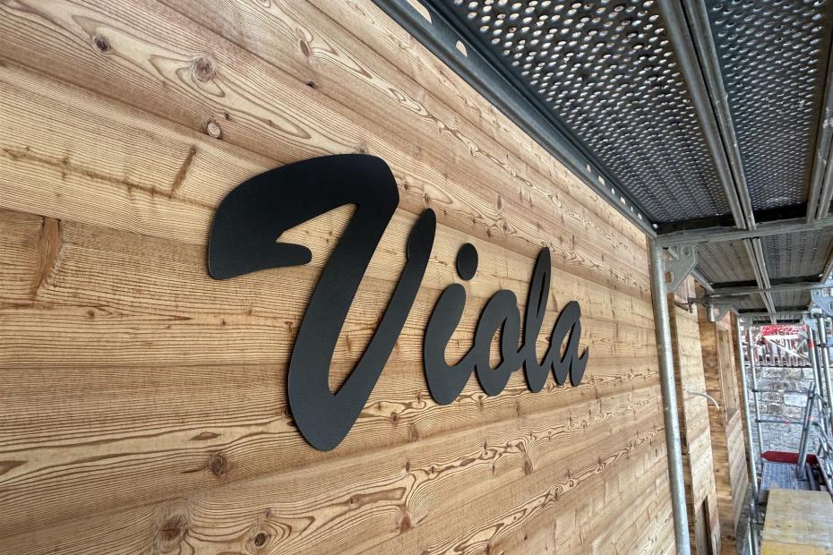 Gefräste oder gelaserte Buchstaben in die Fassade gesteckt